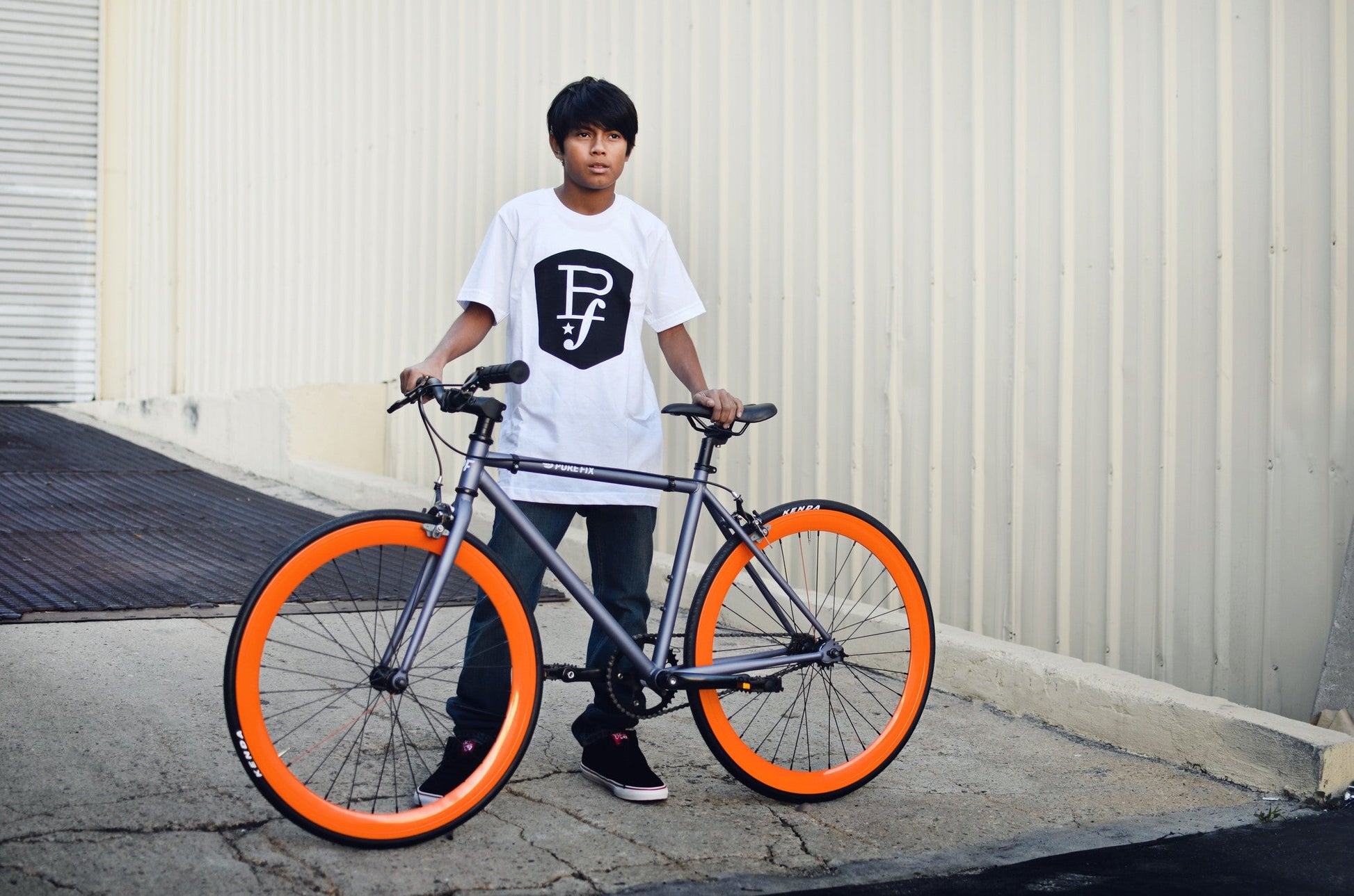 This ain't your daddy's bicycle. Matte grey with orange wheels, people will call you Big Papa on this swanky set of wheels.